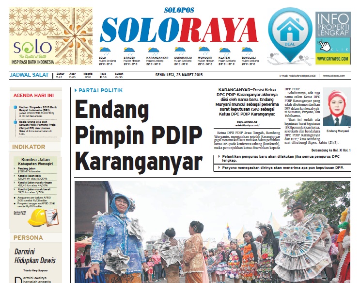 Solopos Hari Ini Soloraya Hari Ini Endang Pimpin Pdip Karanganyar Hingga Tiga Polisi Sragen Dihukum